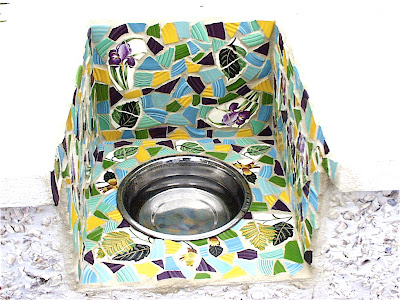 I decided to try a bit of china on it (the red and white Woods that I love) just to see if it looked corny or not without grout. It looks fine, actually, so I may mix it up a bit and use china patterns on certain pieces.